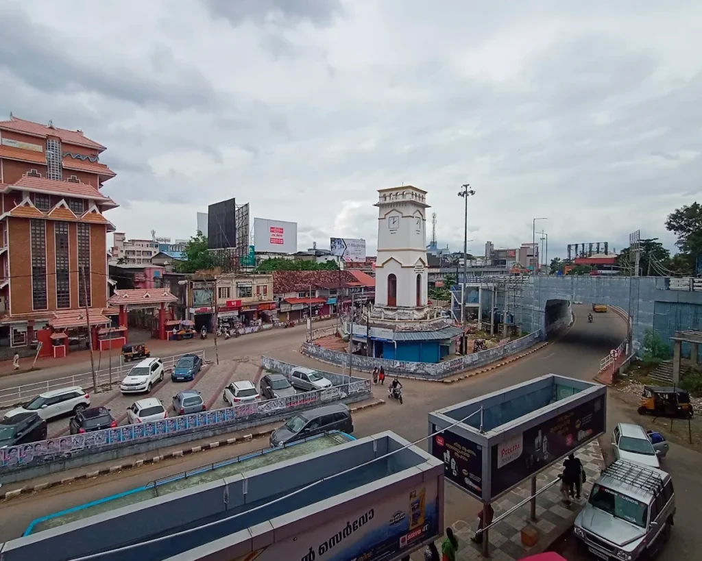 The Chinnakada Clock Tower, located in the heart of Kollam, is one of the most recognizable landmarks of the city. Situated at the busy Chinnakada Junction, this historic clock tower stands as a symbol of Kollam’s heritage and urban identity.