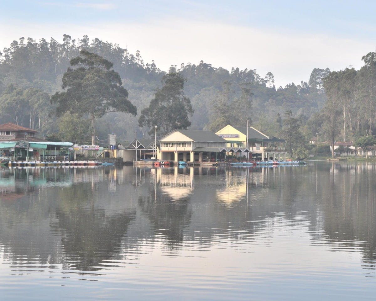 The lake is popular for activities such as boating, cycling, horse riding, and leisurely walks along its perimeter. Tall eucalyptus trees, colorful flowers, and misty surroundings enhance the beauty of the lake, especially during early mornings and evenings. The calm waters reflect the surrounding hills, creating picturesque views ideal for photography.