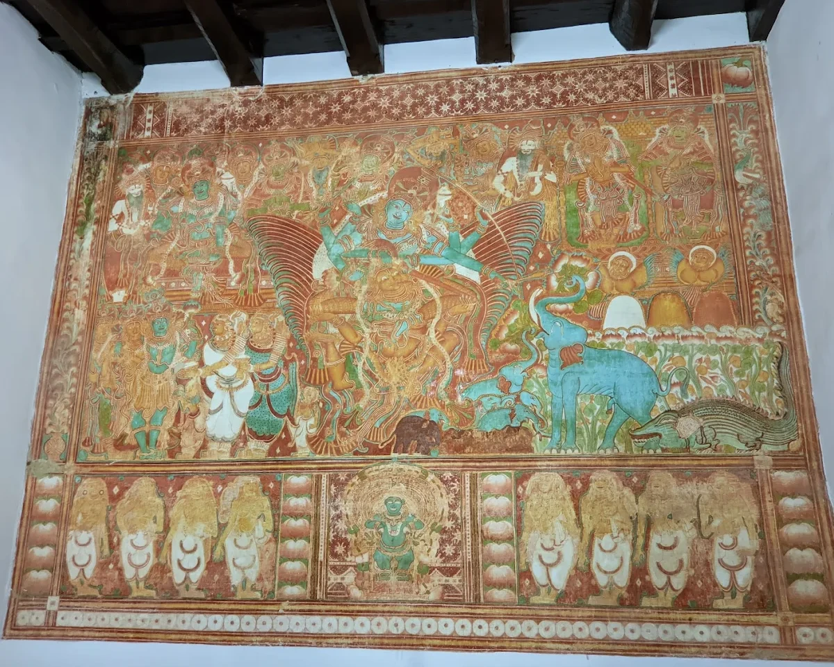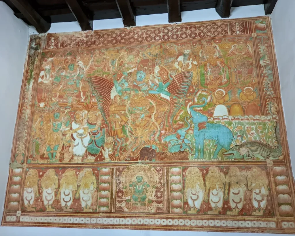 One of the major highlights of the palace is the famous mural “Gajendra Moksham”, one of the largest mural paintings in Kerala, depicting a story from Hindu mythology with remarkable artistic detail.