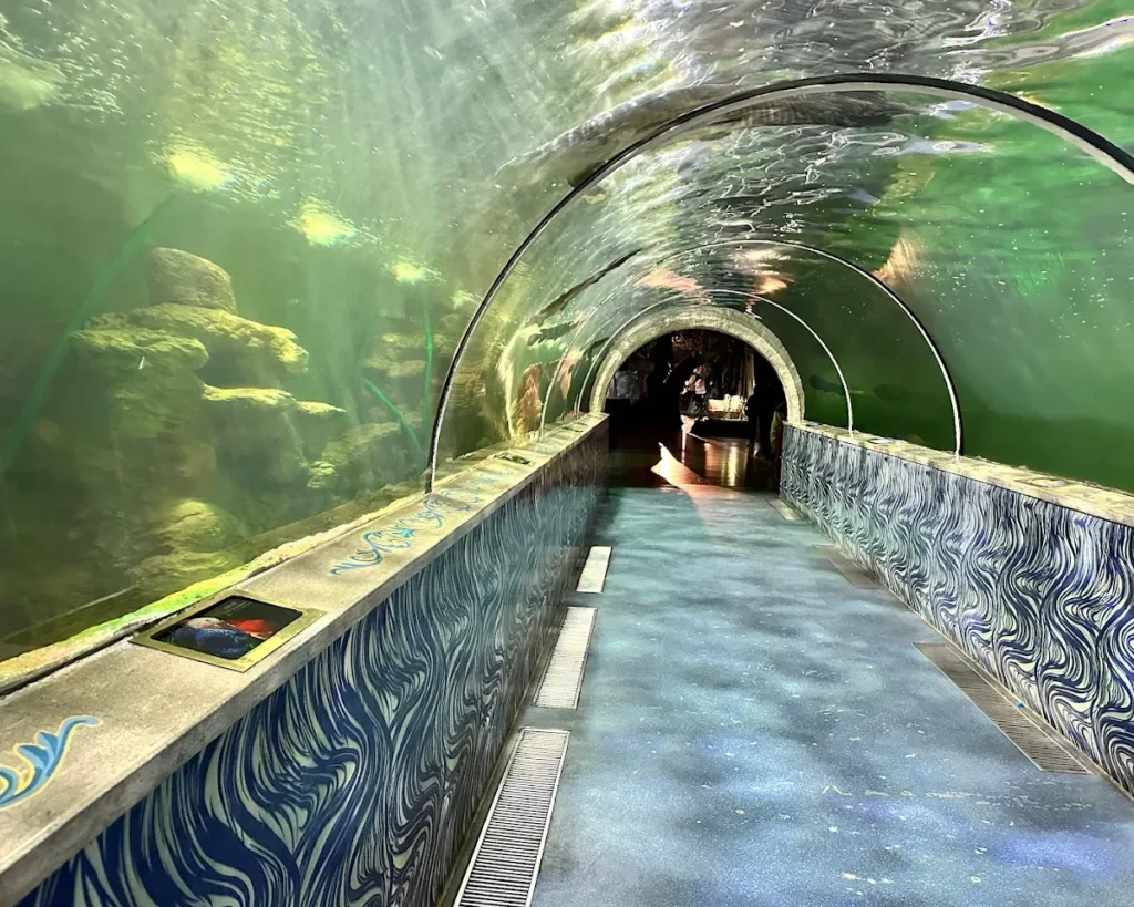 The highlight of Marine World is its underwater tunnel aquarium, where visitors can walk through and witness a variety of marine species such as sharks, rays, and colorful fish swimming overhead. The facility also features multiple themed tanks showcasing freshwater and saltwater species from different parts of the world.