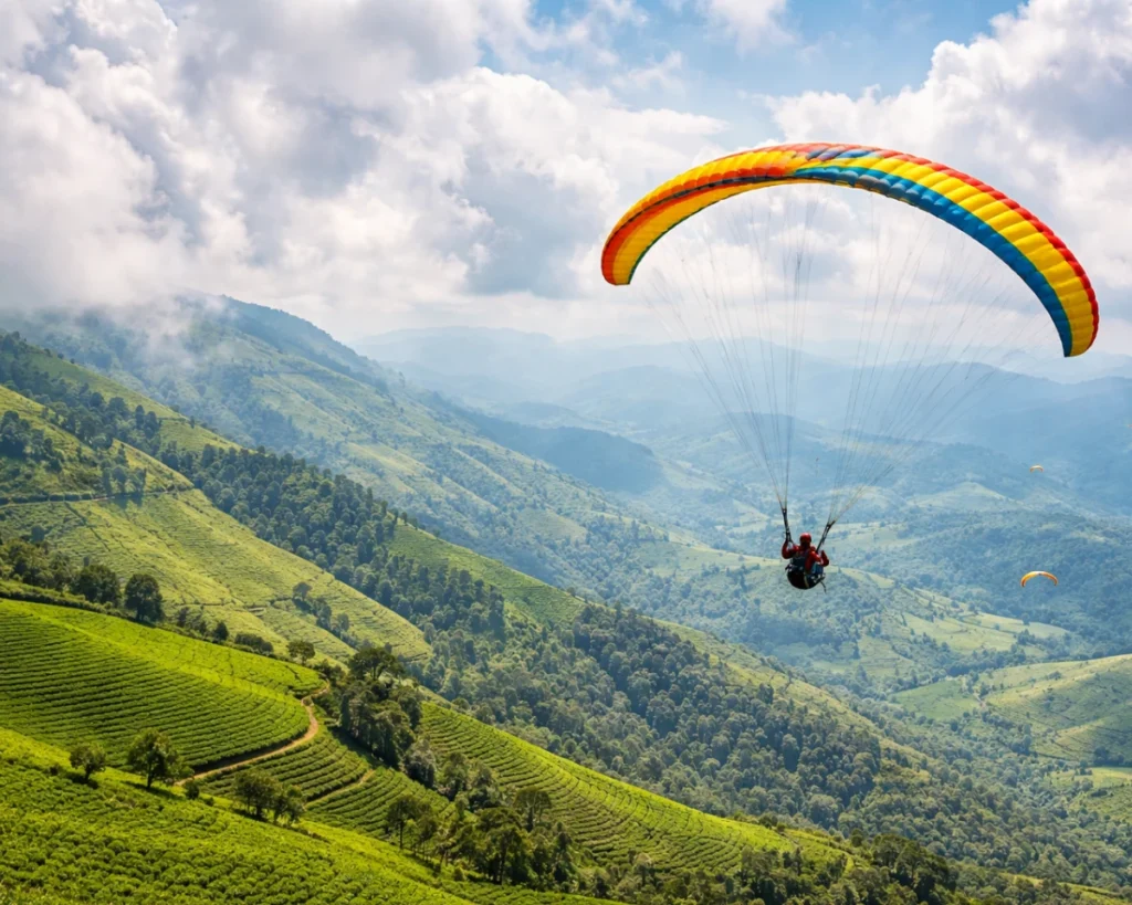 Visitors can enjoy tandem paragliding with trained instructors, allowing them to safely glide over rolling hills, valleys, and lush greenery while enjoying breathtaking aerial views. The experience combines thrill and natural beauty, making it unforgettable.