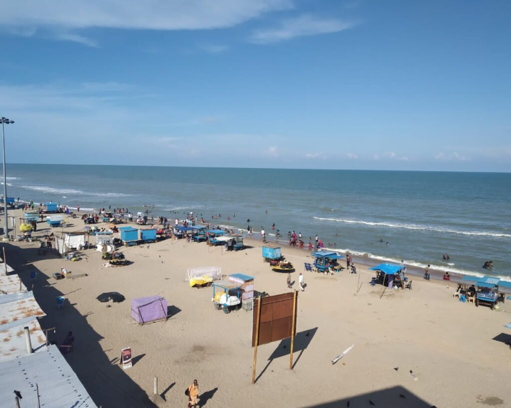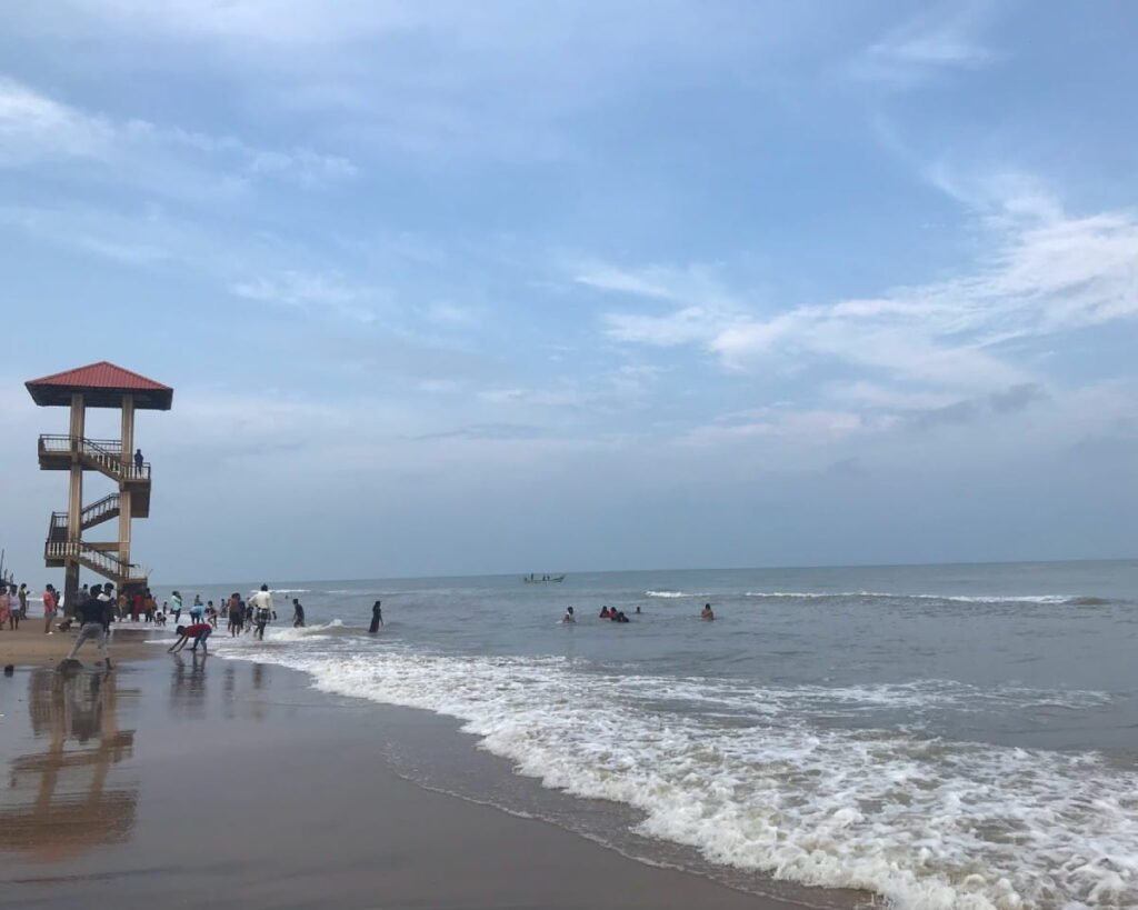 The beach features a long stretch of sandy shoreline, gentle waves, and a refreshing sea breeze. Compared to more commercial beaches, Velankanni Beach maintains a quiet and serene atmosphere, making it ideal for leisurely walks, prayerful reflection, and enjoying the natural beauty of the Bay of Bengal. The soothing sound of waves adds to the tranquil experience.